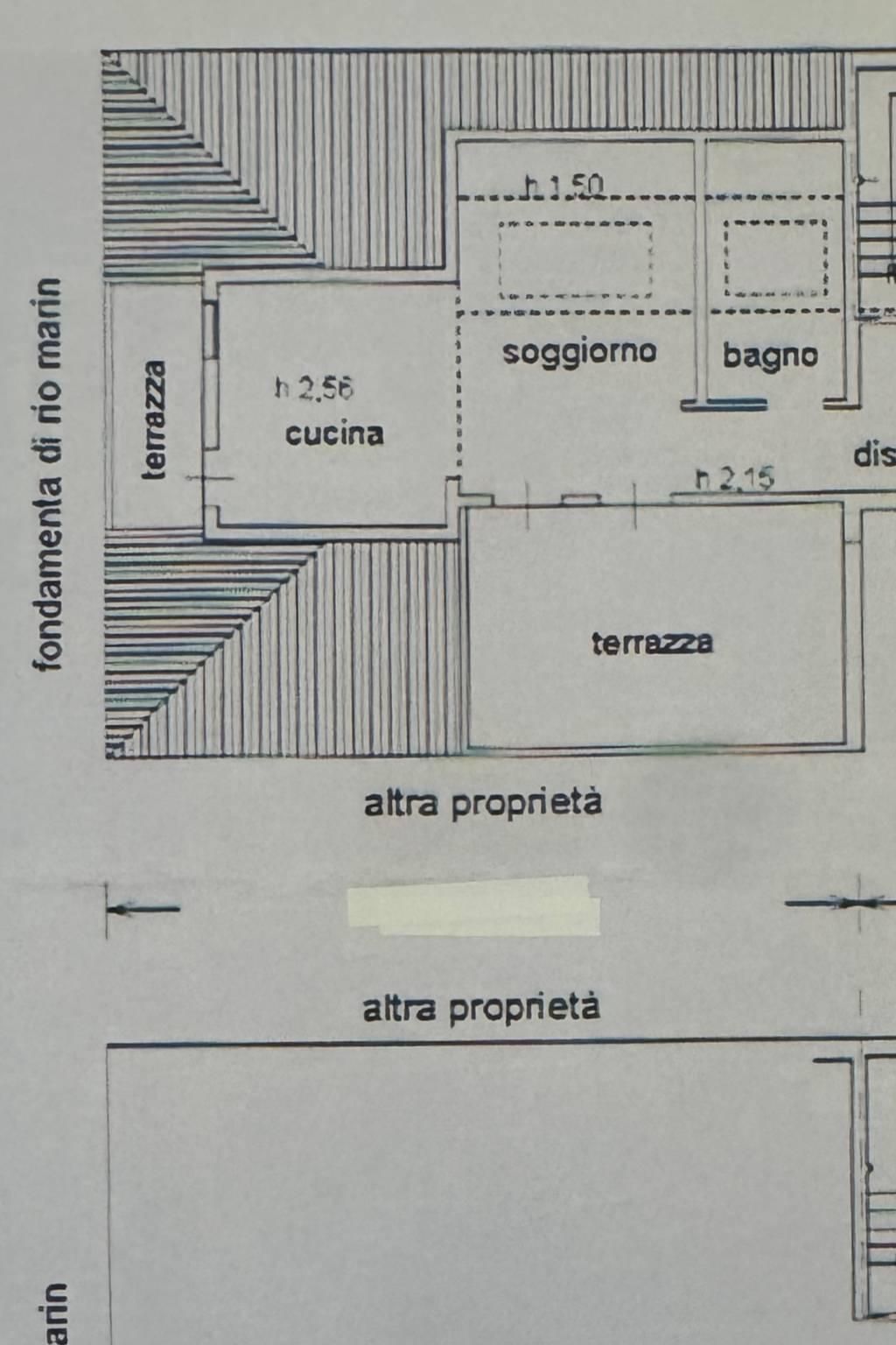 - piano secondo da rimodernare composto da Ingresso, ripostiglio, 2 camere matrimoniali, cameretta, cucina, 2 bagni, ampio Salone luminosissimo con bellissima vista sul canale di rio Marin;